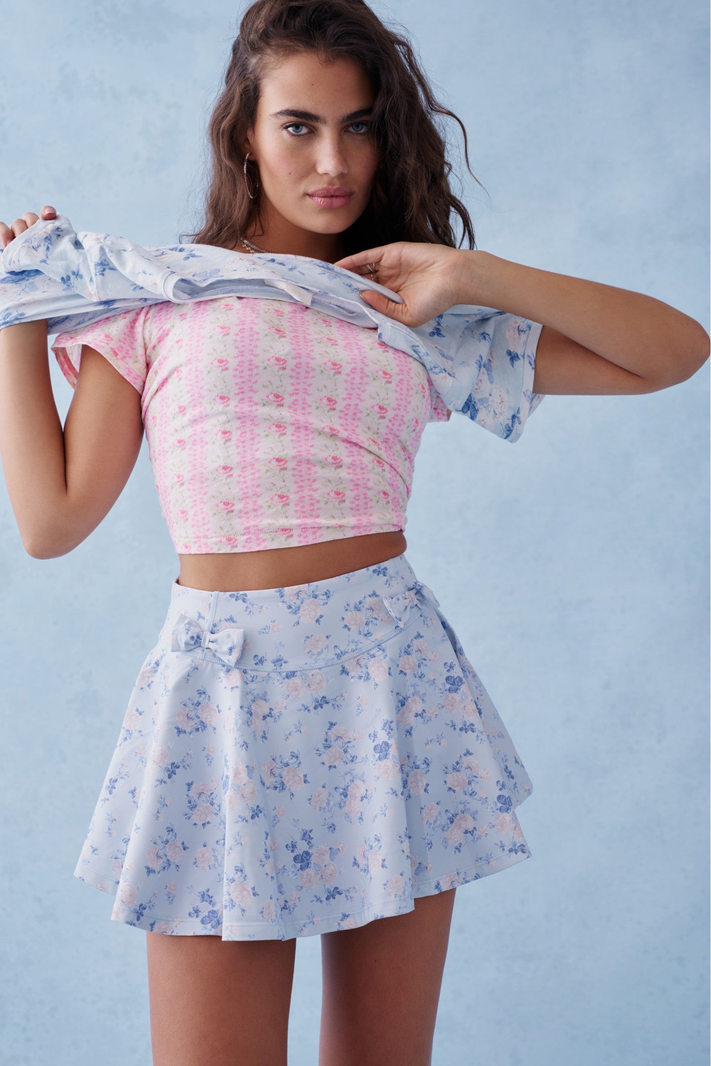 For the girls who like serving looks on and off the court, the Corene Skort returns for the season. Style meets functionality with this flirty, sporty skirt featuring our signature floral prints, built-in shorts, bow details on the hips, princess seams on the yoke, shearing at the yoke seam, pockets, and an airy, ruffle skirt. Designed with a lightweight, breathable fabric this active skirt is perfect for low and high impact workouts.
