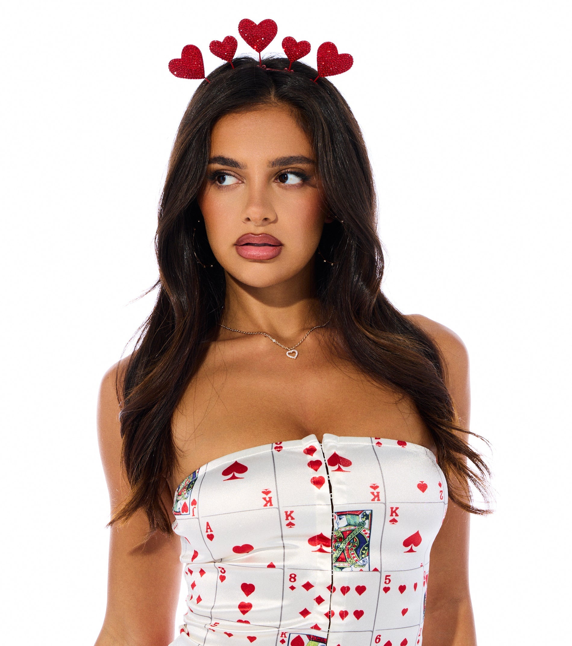 Serving sparkle with every strike—this cupid-inspired headband is ready to steal hearts all Halloween night. Rhinestone hearts add the perfect flirty finish to your love-struck look.