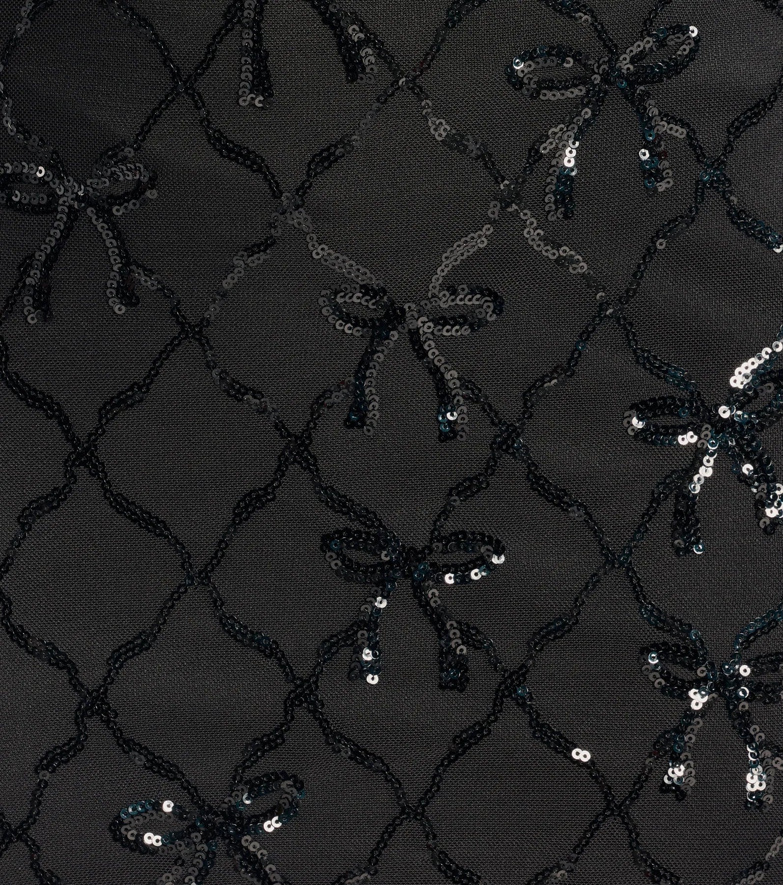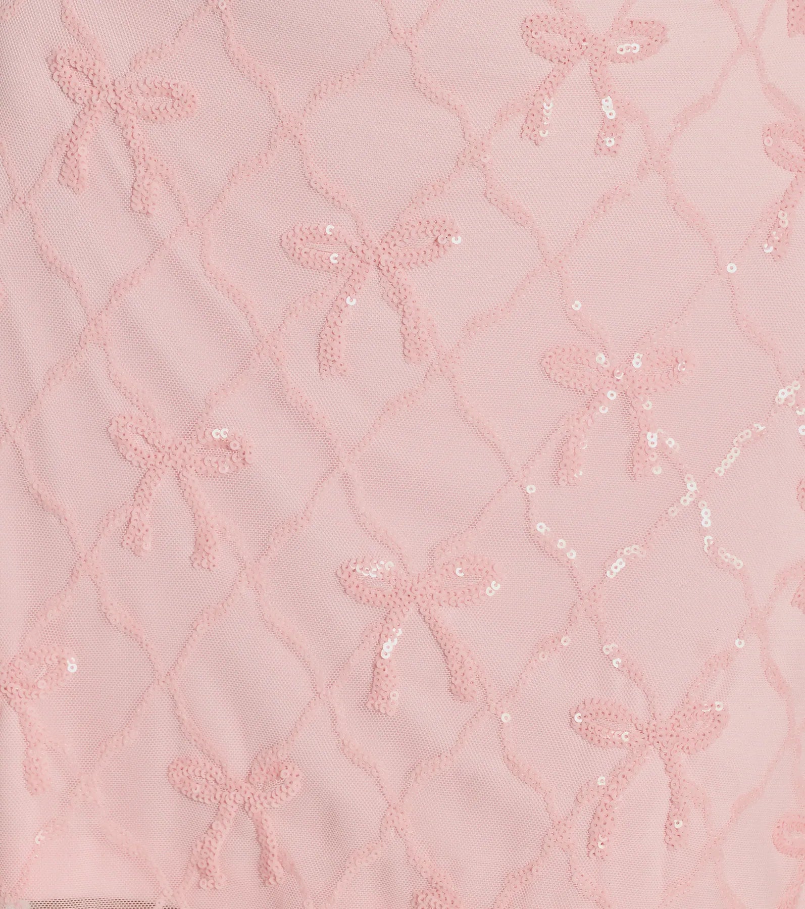 This adorable mini dress is embroidered with the cutest sequin bow pattern on lined mesh fabric to capture those trendy coquette vibes! The short dress features a strapless straight neckline, a satin ribbon lace-up back design for a customized fit, and a fitted A-line silhouette. Perfect for a party, style with metallic heels.