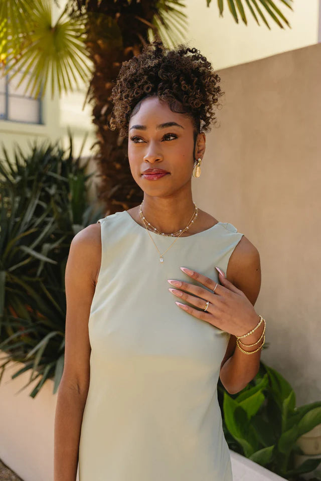 Softly elegant with a modern twist, the Ella Sage Green Satin Cowl Mini Dress is the perfect blend of sophistication and subtle allure. Crafted from silky satin in a calming sage green hue, this mini dress features a sleek round neck in the front and a stunning draped cowl detail at the back, adding an unexpected and elegant touch.