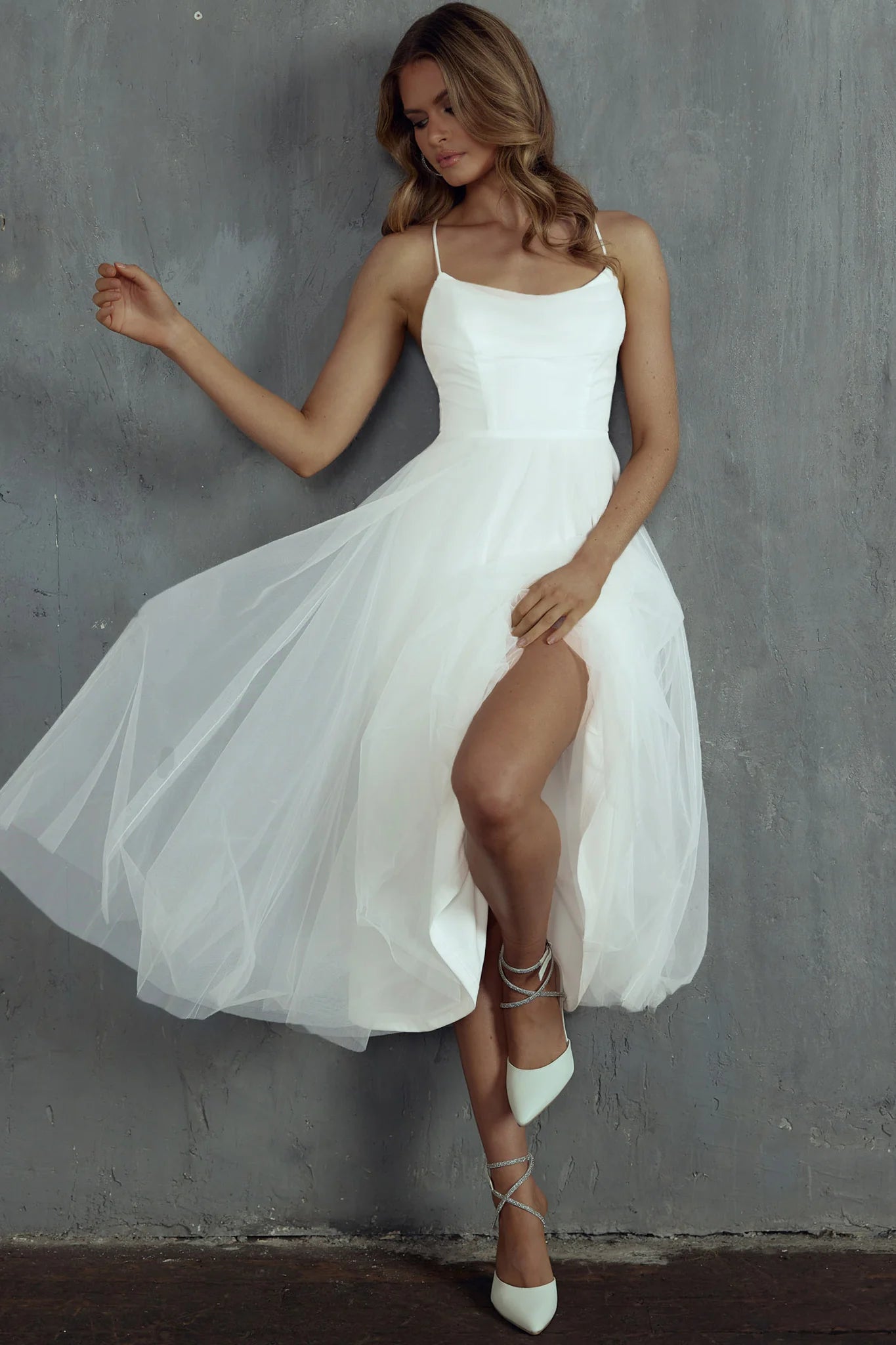 You'll be floating on Cloud 9 in our stunning Floating By midi dress. We are loving the dreamy mesh overlay and lace-up back, giving us all the princess vibes. Wear it for your bridal shower or a special birthday occasion teamed with clear heels and a clutch.
