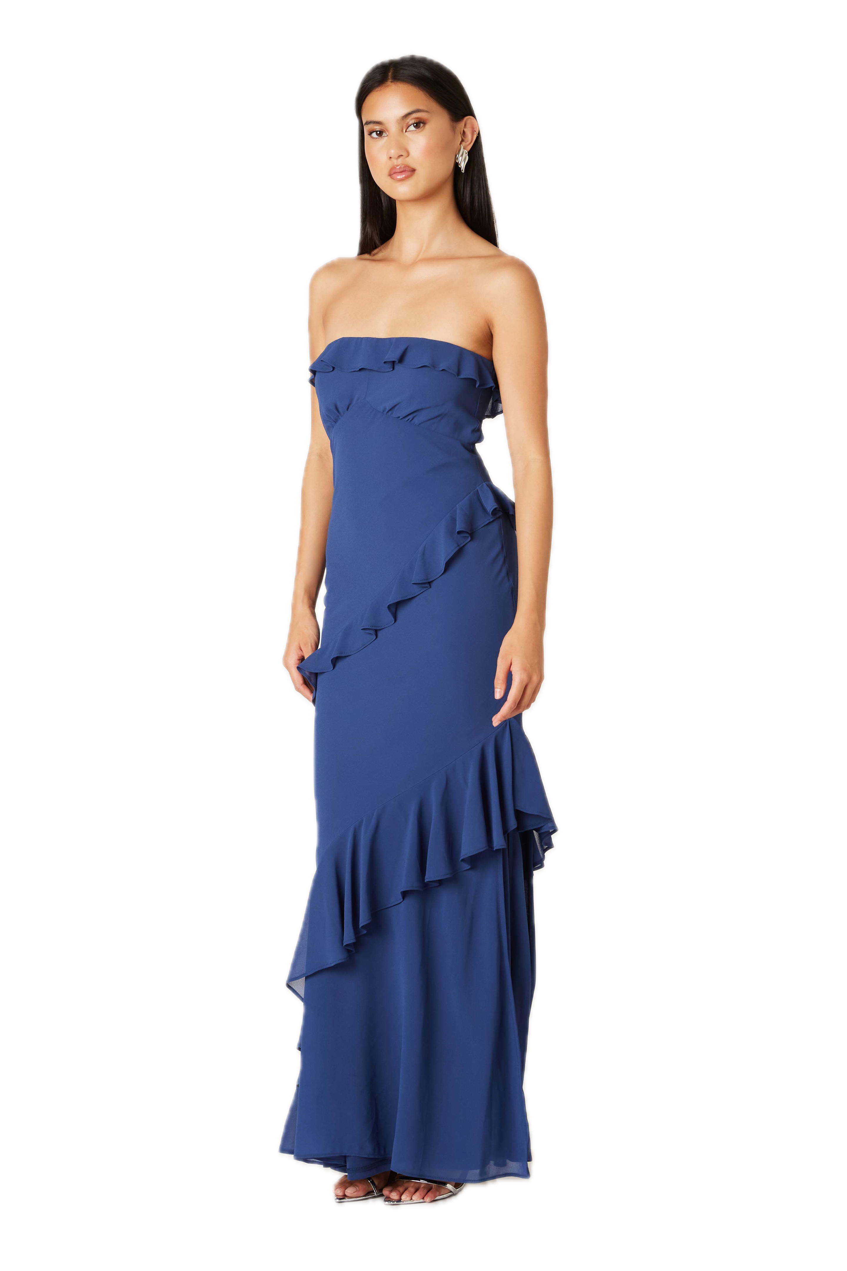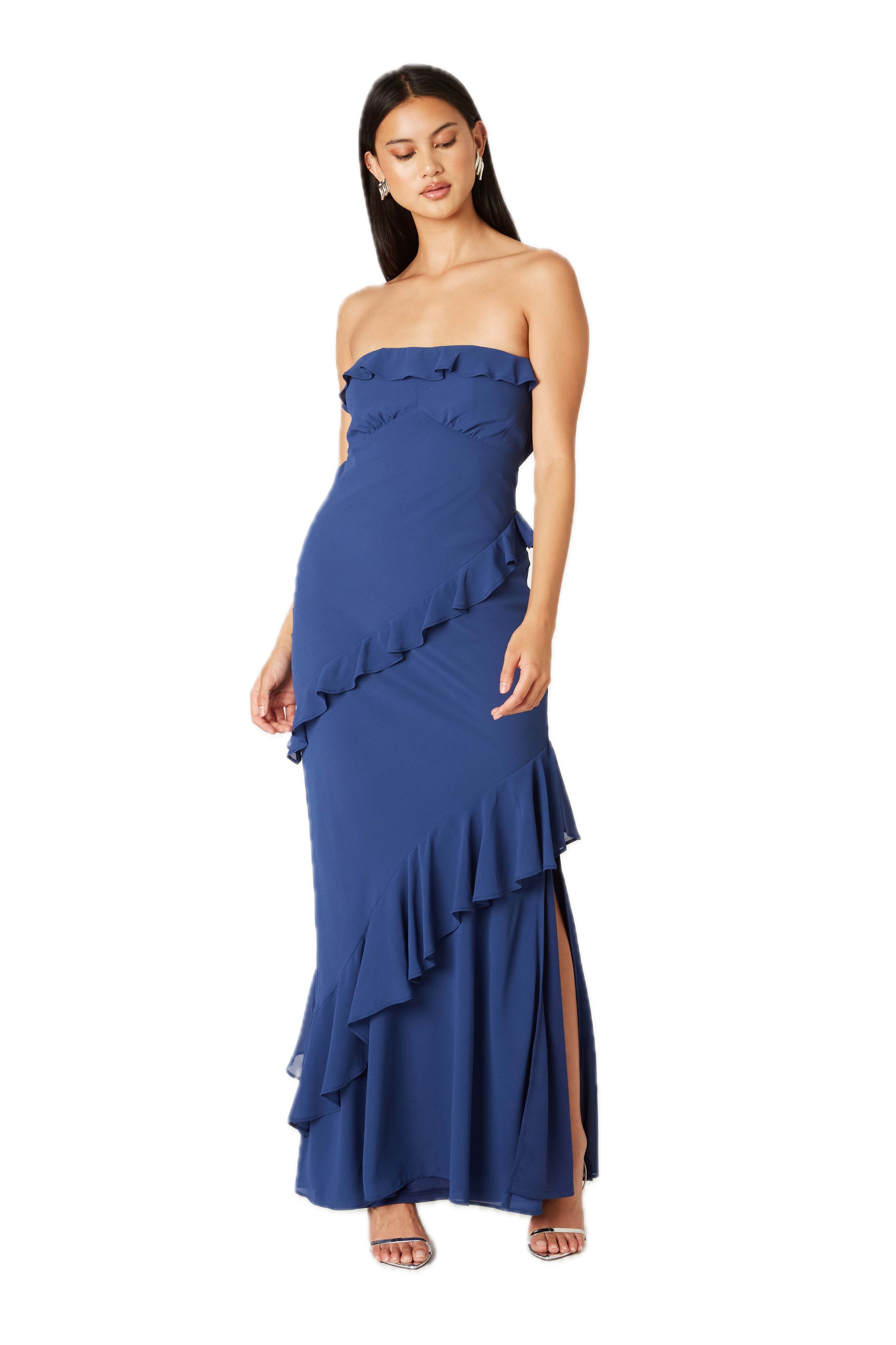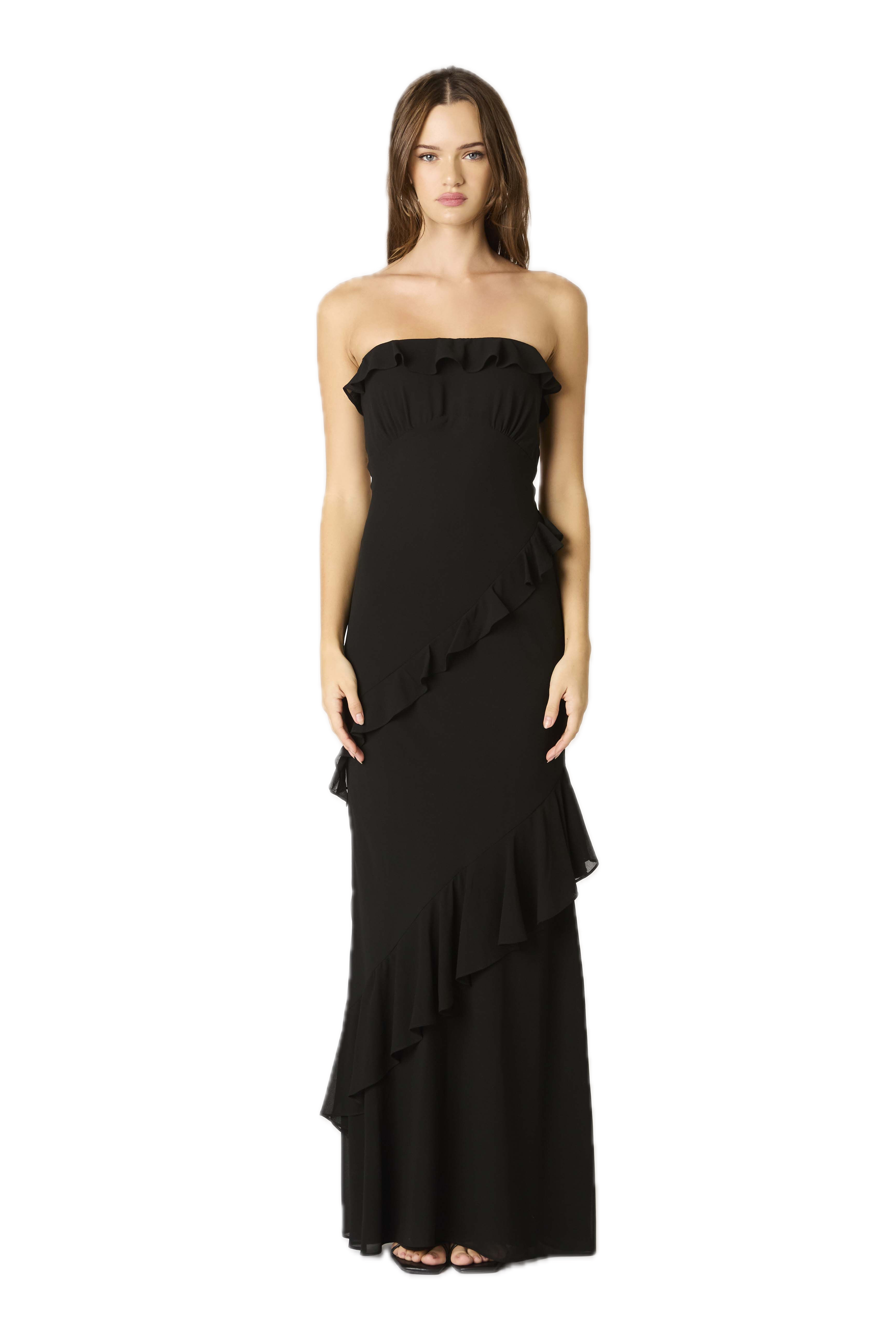 Strapless ruffle maxi dress
