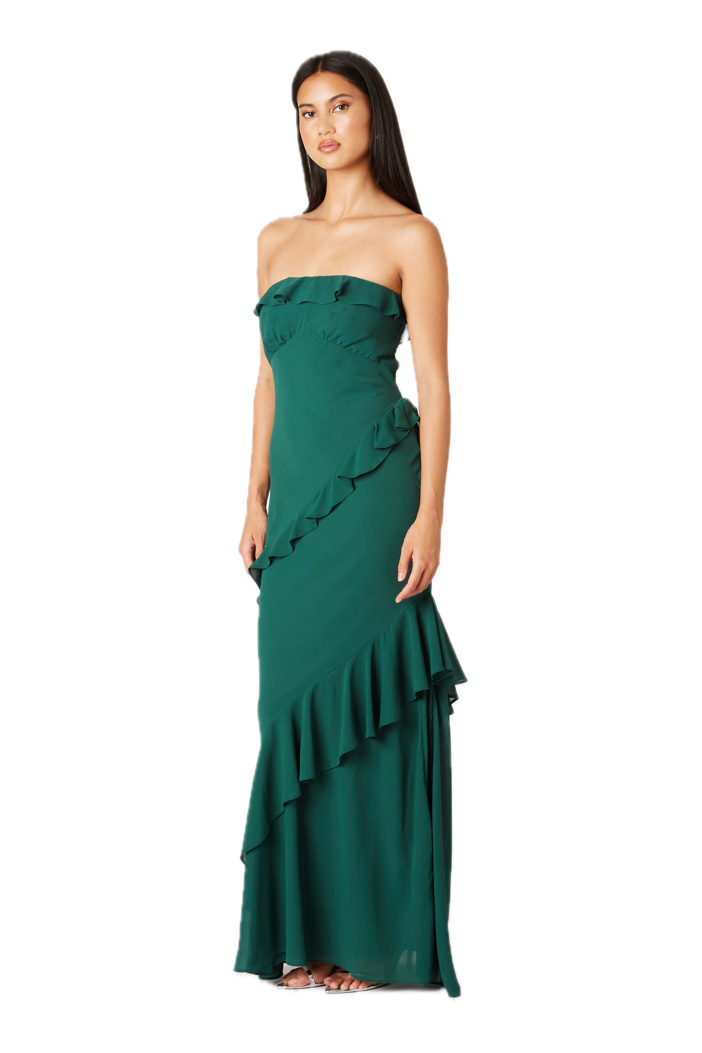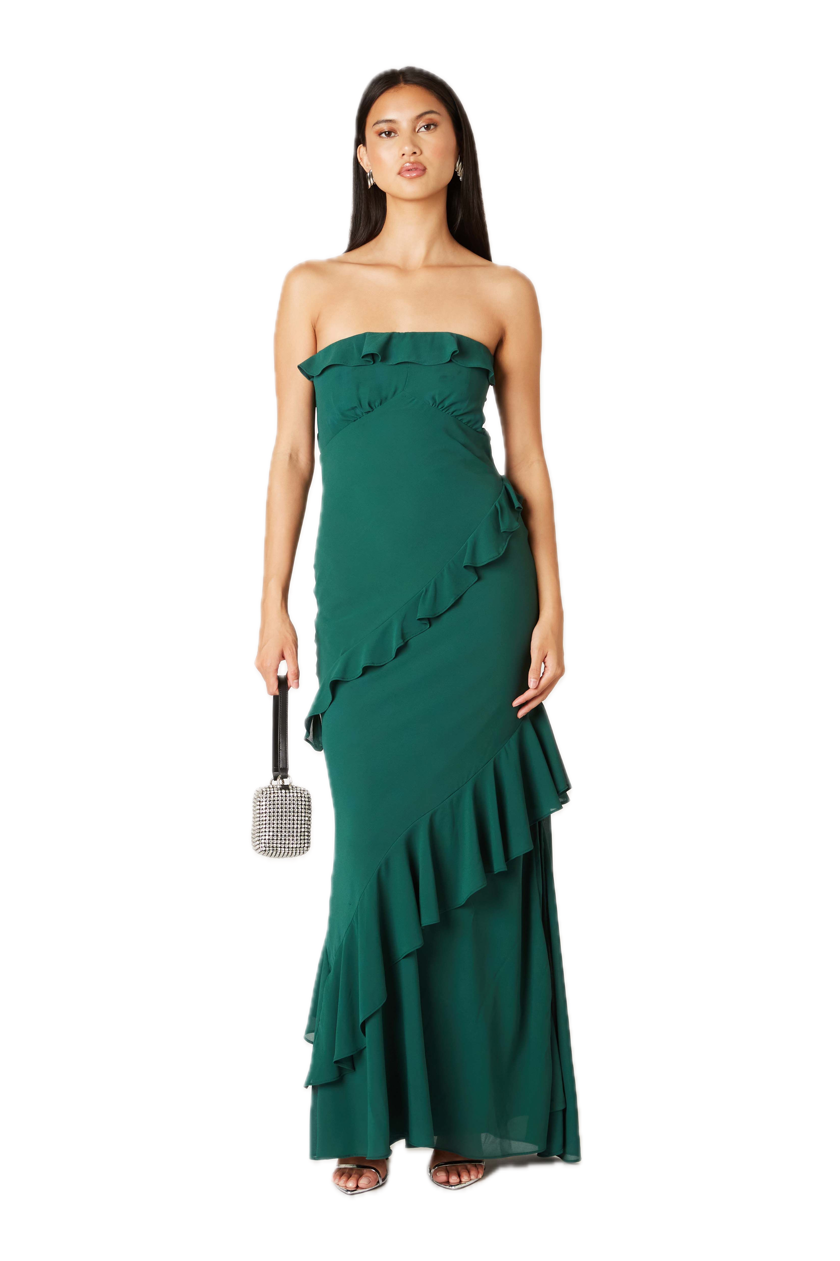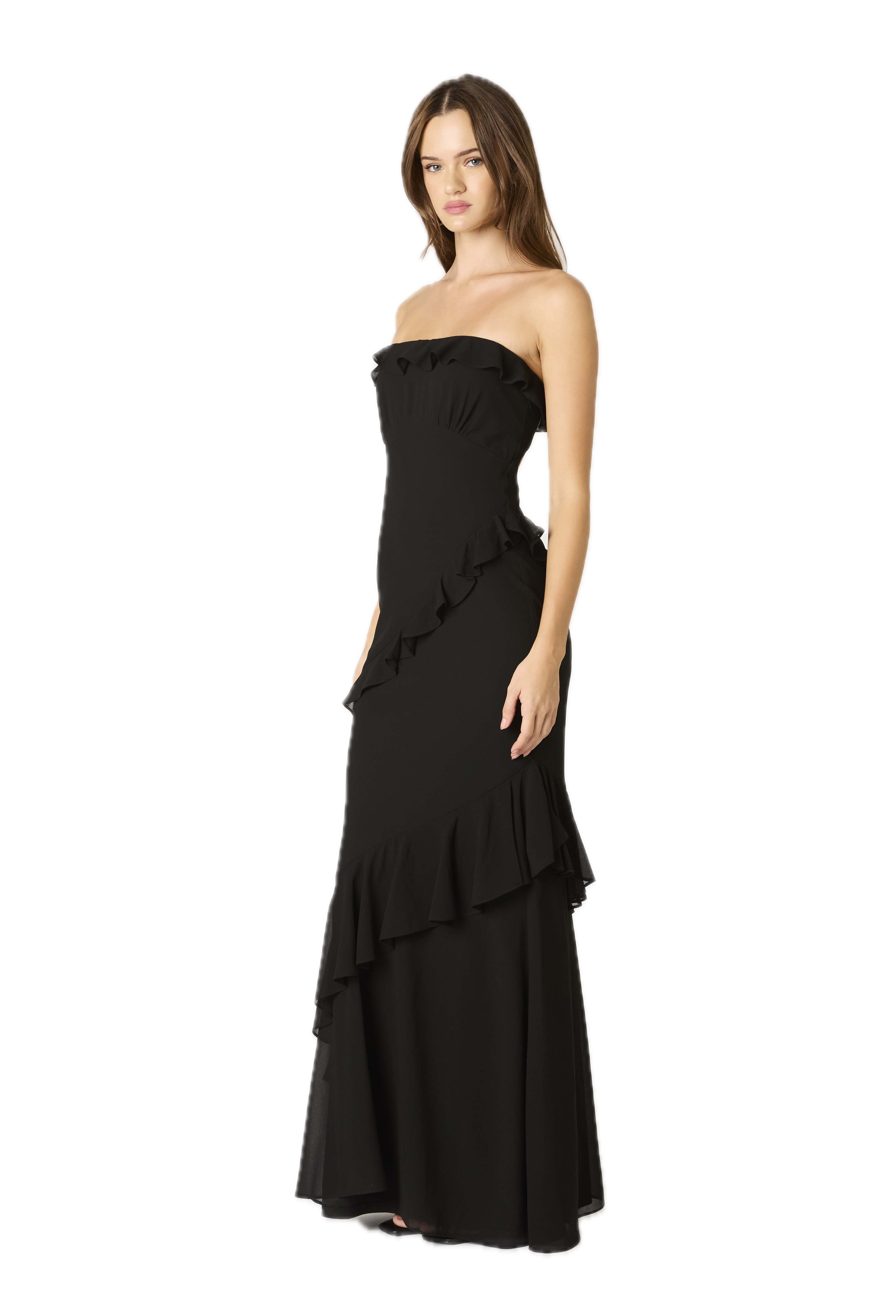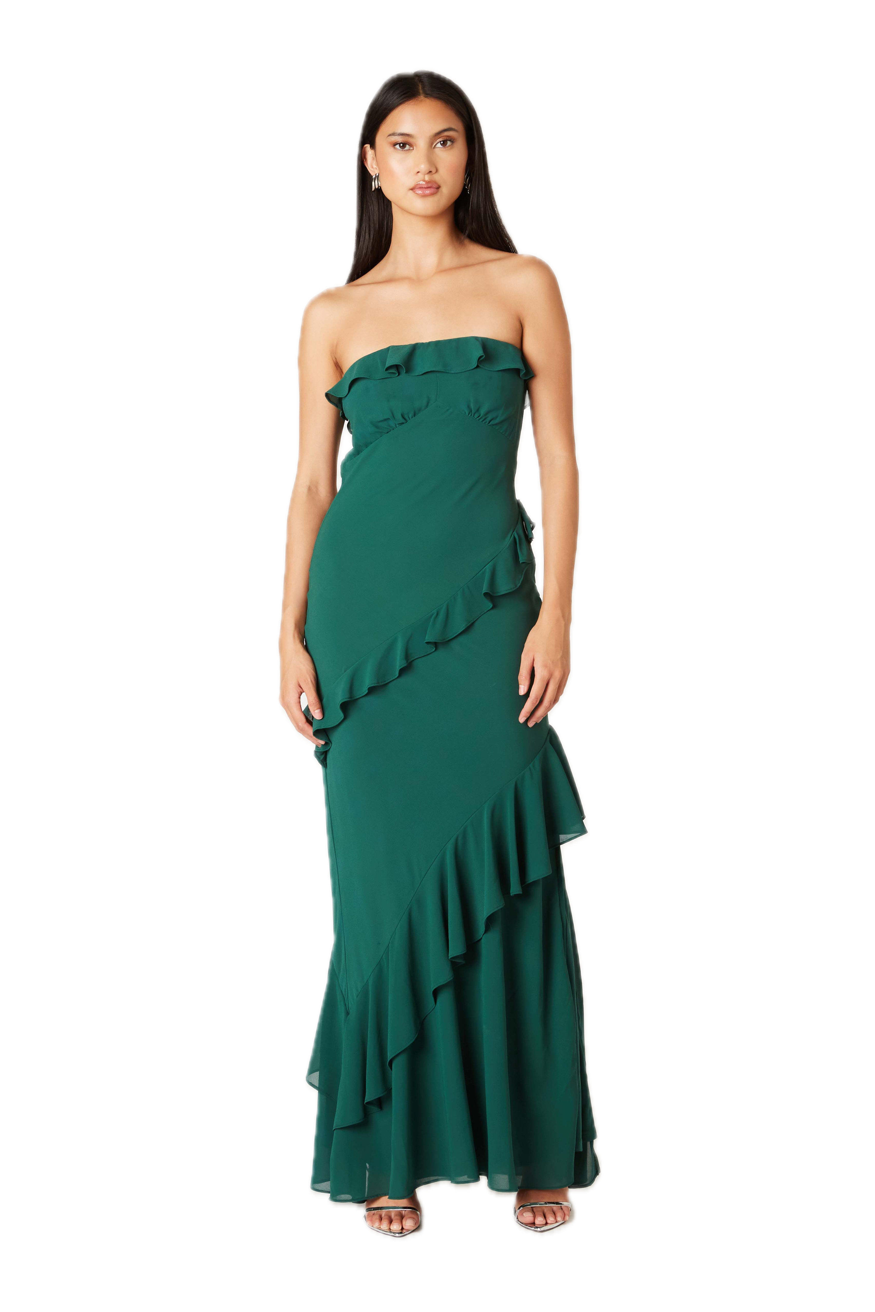 Strapless ruffle maxi dress