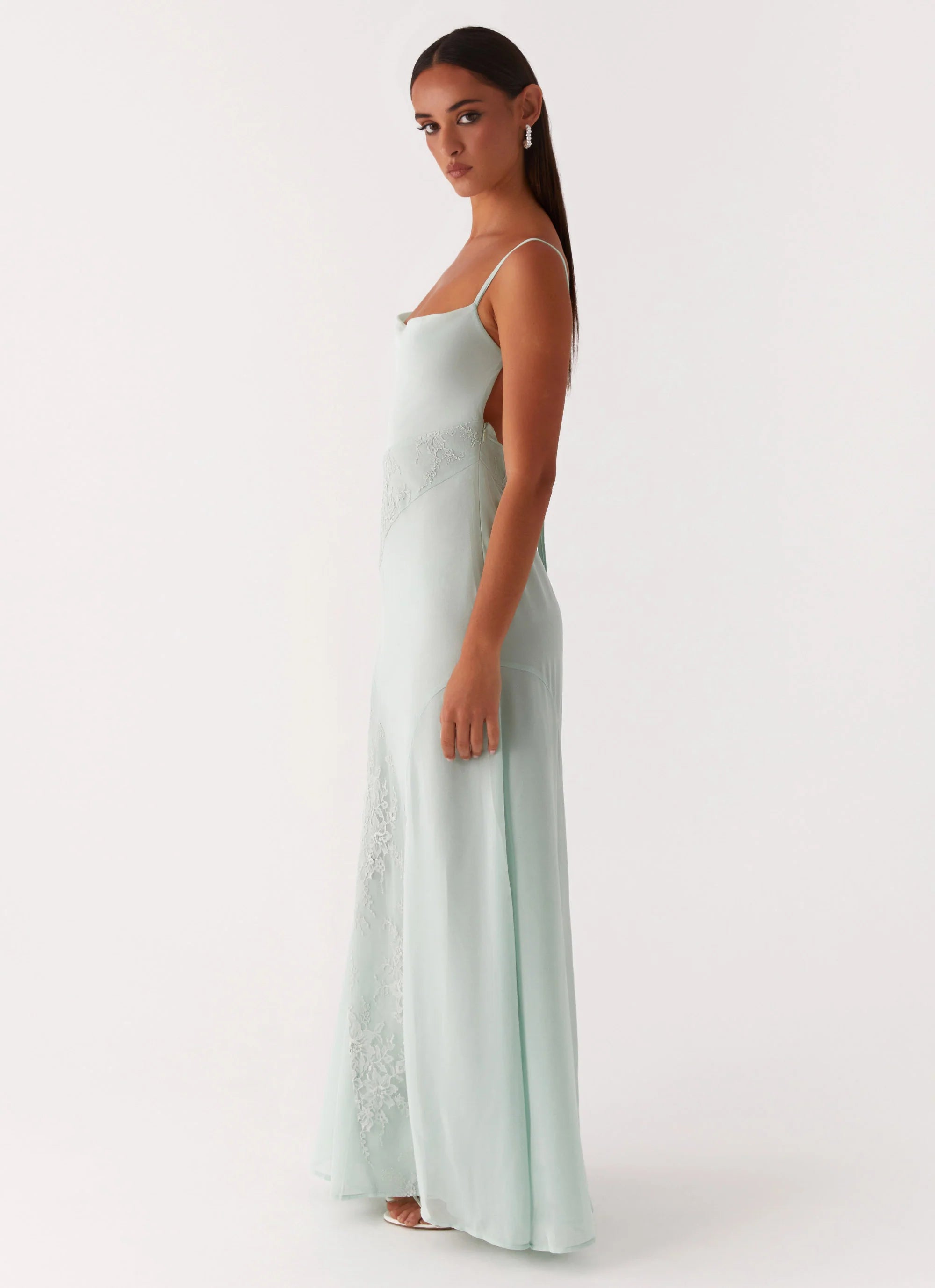 The Gabriana Maxi Dress features a straight neckline, thin adjustable straps, and an open back, creating a sleek and flattering silhouette. Perfect for any occasion, this dress combines effortless elegance with a touch of allure.