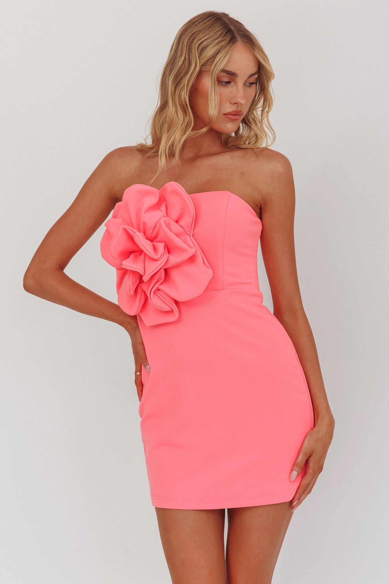 Steal the spotlight in our gorgeous Karoline mini dress. It features a chic 3D flower decoration in the bodice and strapless design. It's just what you've been looking for for Homecoming or your big birthday celebration. Team it with strappy, tie-up heels and a clutch for an unforgettable look.