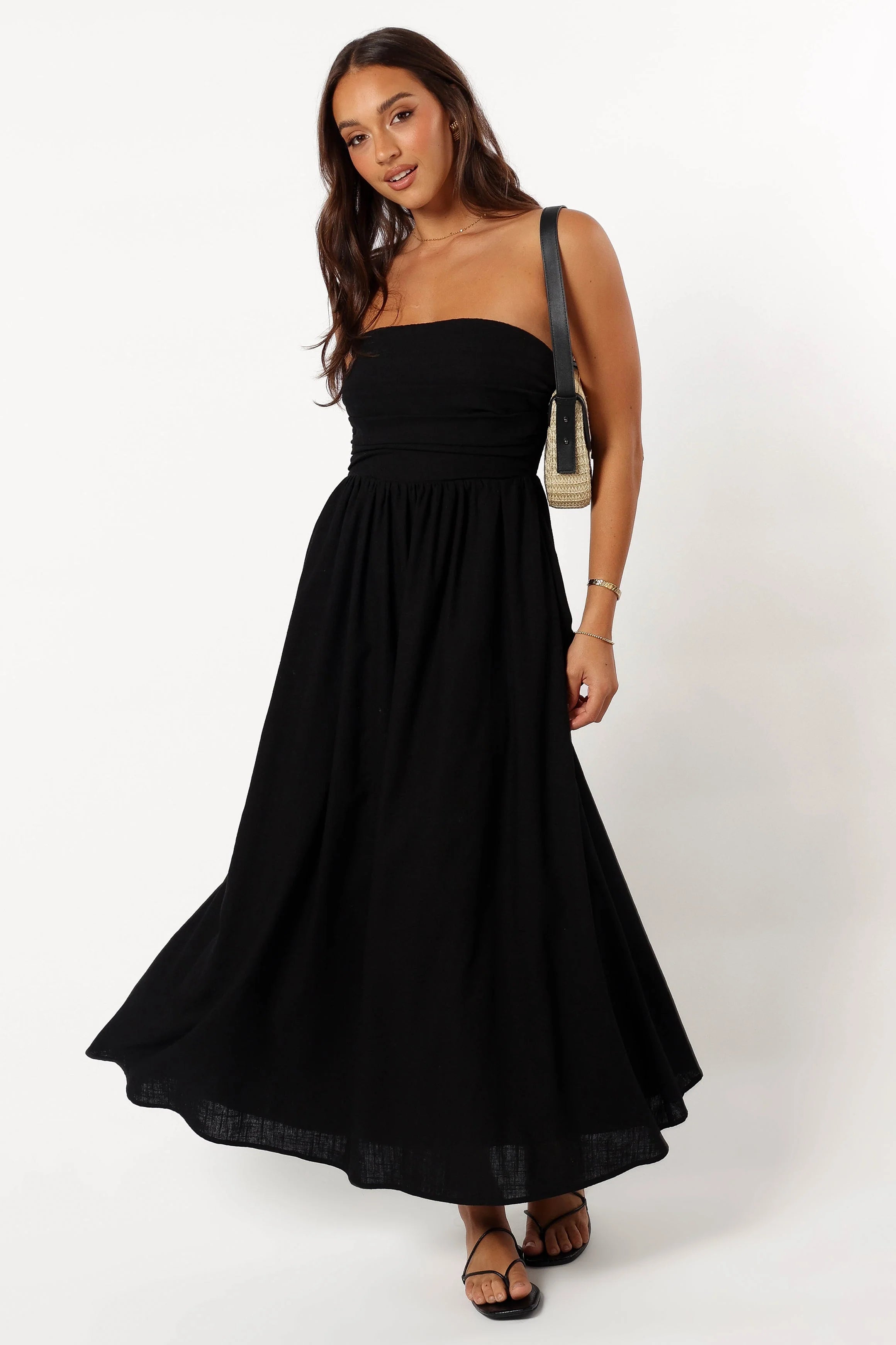 | DETAILS This strapless maxi dress is a must-have for any wardrobe. The straight neckline with pleated bodice feature makes it stand out. Plus its shirred back panel and side invisible zip provides a secure and comfortable fit, allowing you to dance the night away without any worries.