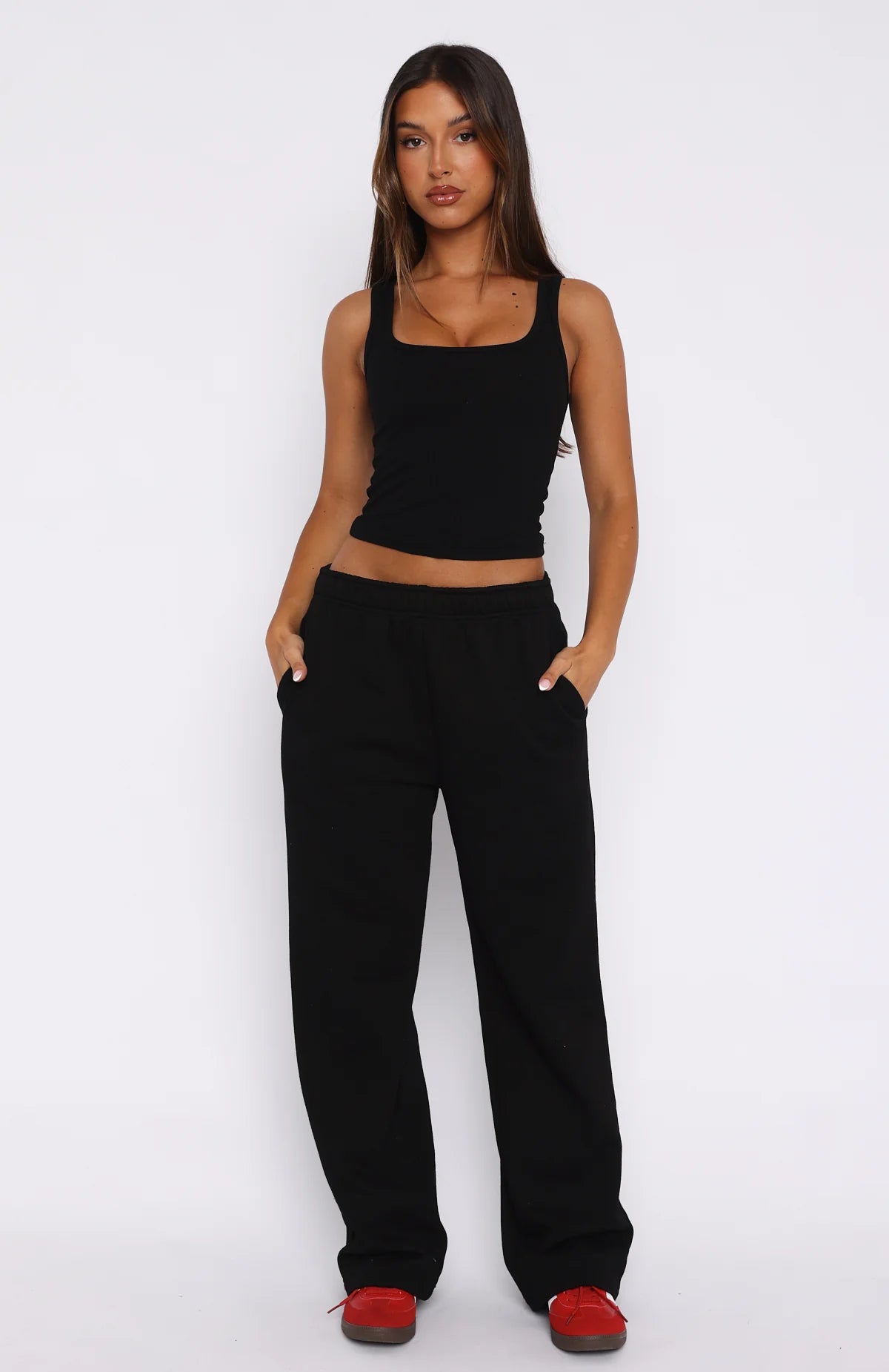 The No Excuses Wide Leg Sweatpants Black are your new loungewear staple! Features a thick elasticated waistband with drawstring, soft fleece fabric lining, high rise fit, back pocket detailing and straight leg design. Pair with the Make It Known Cap and a white crop for a super cute campus vibe!