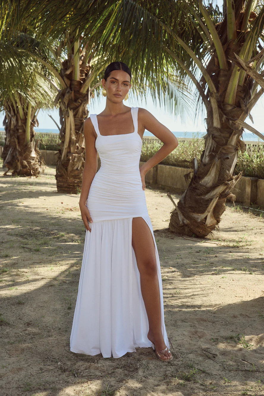 The RUNAWAY THE LABEL Carly Maxi Dress in White offers effortless elegance and understated charm, perfect for destination events on pristine beaches or upscale garden parties. Embrace the timeless beauty of this dress, designed to create stunning and memorable summer moments.
