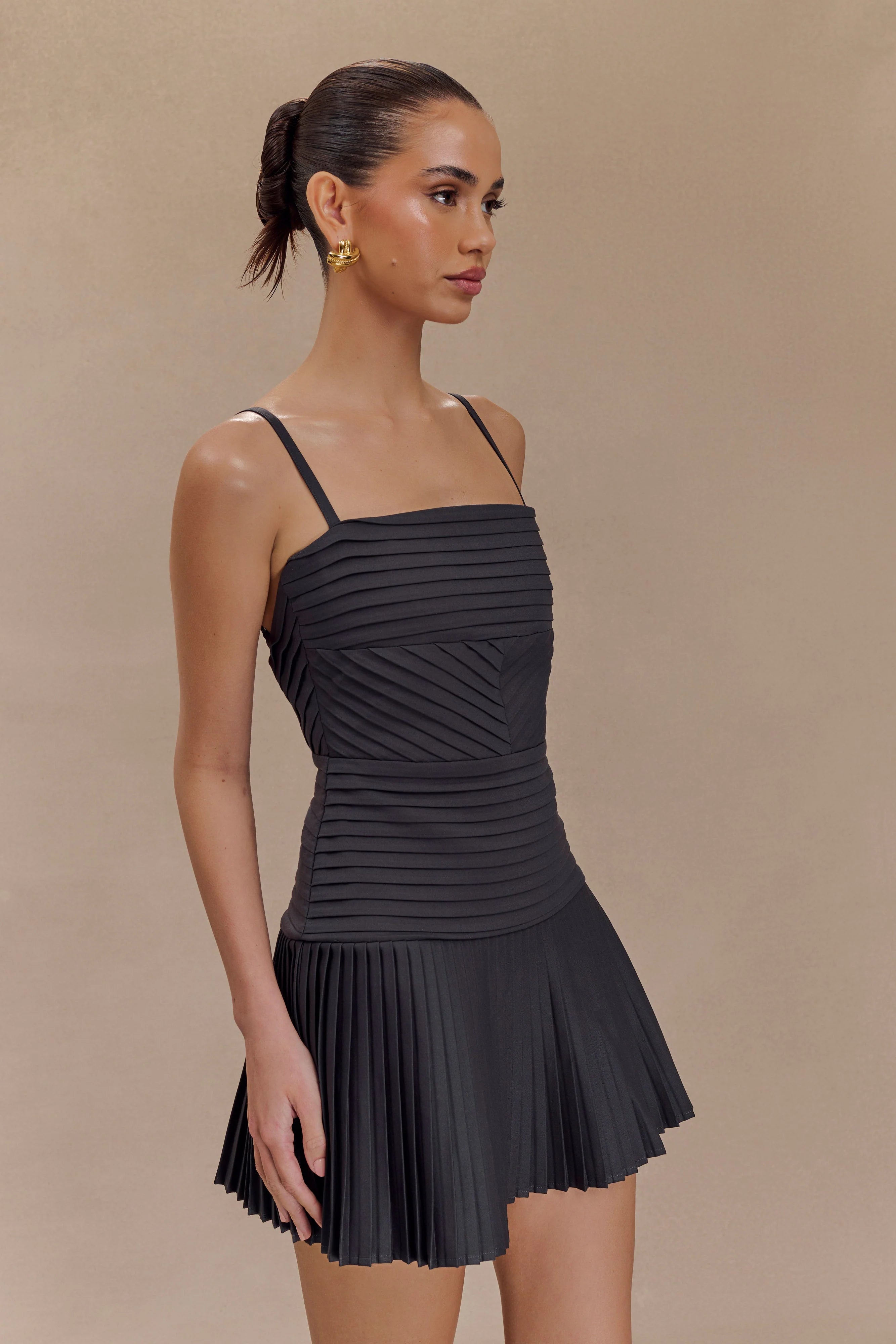 Step into a world of elegance with the RYLEE Multi Pleat Mini Dress, designed to elevate your wardrobe with its charming details. This dress features adjustable straps for a perfect fit and a tie and zip back closure for added security. The fitted bodice beautifully accentuates your figure, while the pleated panelling introduces a sophisticated texture. The gathered lower skirt flows effortlessly, making this mini-length dress perfect for twirling at parties or enjoying a day out. Fully lined for comfort, this dress is the ideal choice for those who want to blend style and grace seamlessly.
