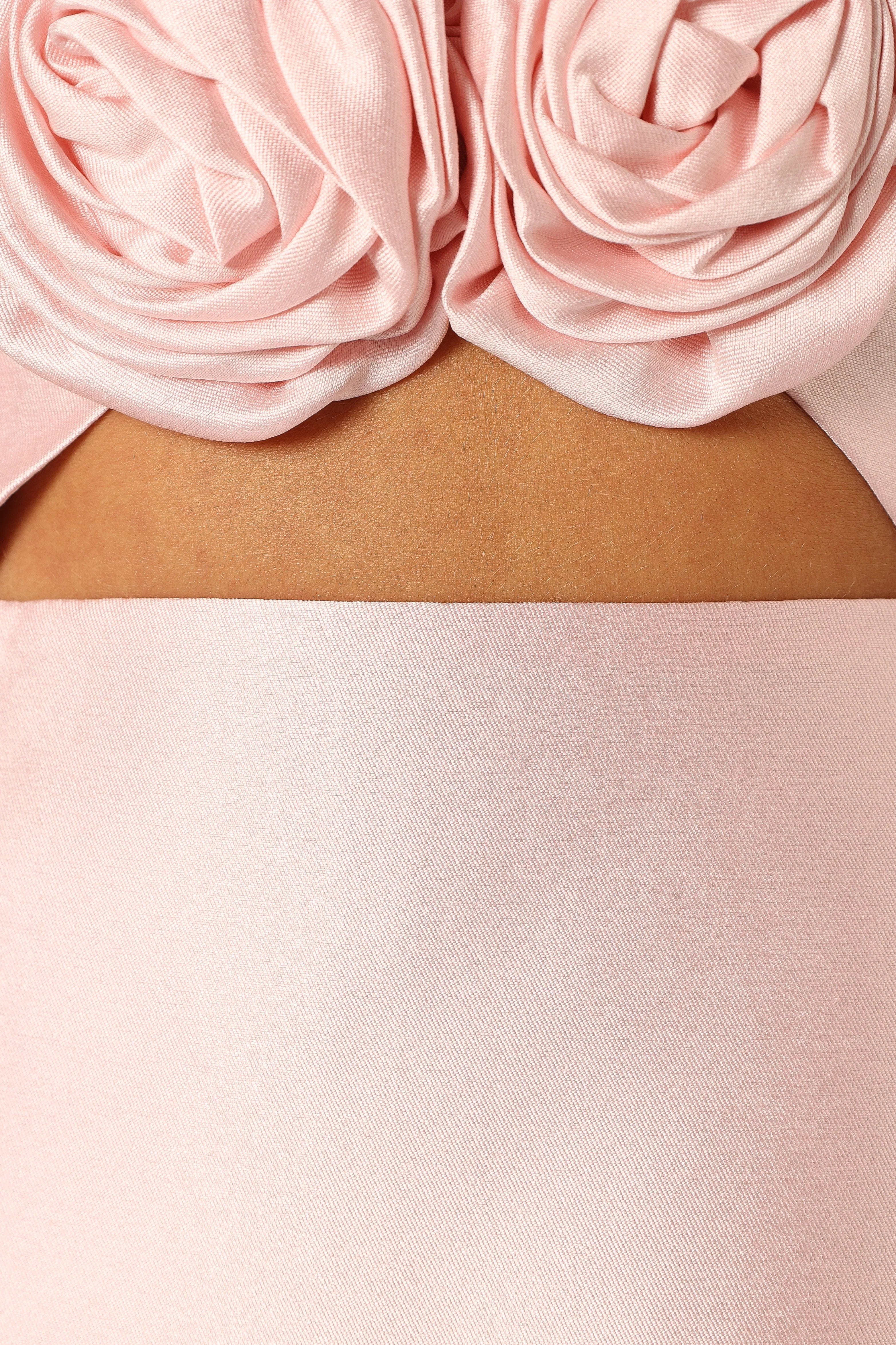 DETAILS This strapless mini dress is a must-have for any wardrobe. The non detachable three rose detail down the front gives it an extra touch of femininity and makes it stand out. Plus, its bust cut out and shirred back panel will make you look like a total dream!